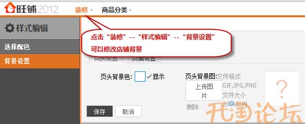 樂創(chuàng)教程針對(duì)新旺鋪如何進(jìn)行“背景修改”,請(qǐng)參照下圖步驟:點(diǎn)擊”裝修“--”樣式編輯“--&r...
